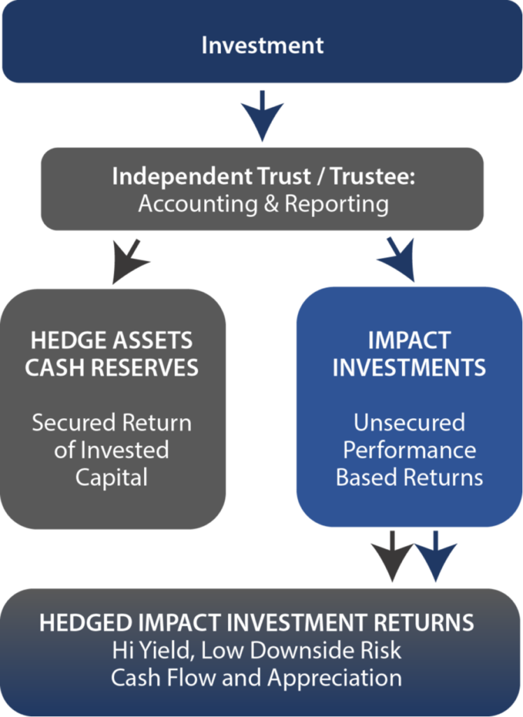- A portion of each investment is allocated to acquire hedge assets that mature for up to 100% of the original investment.